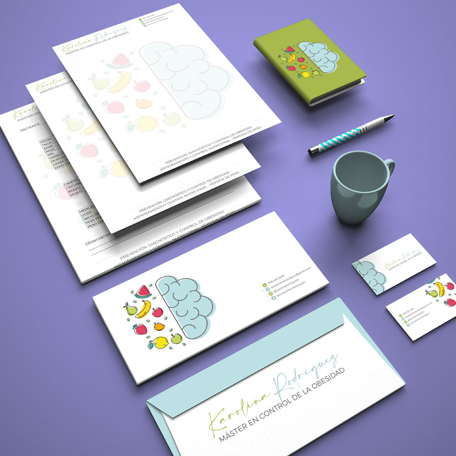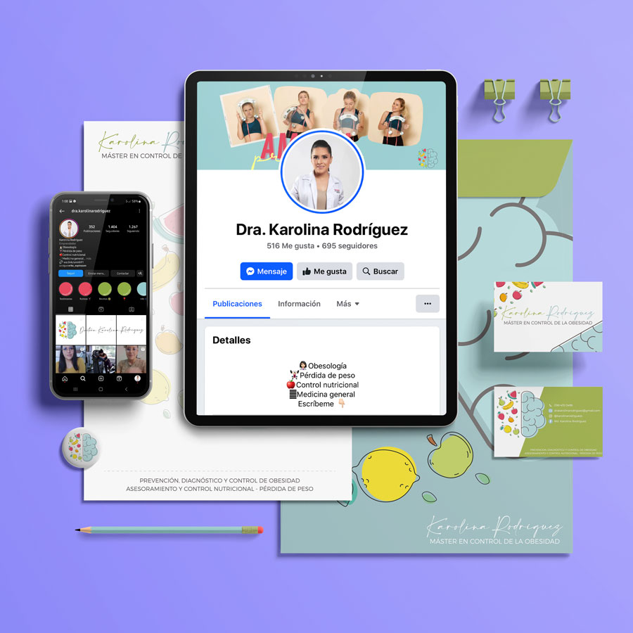 Dr. Karolina Rodriguez’s branding exudes a robust and authentic representation of her dedication to health and wellness. Every aspect of her visual identity, from the logo to the online presence, has been meticulously crafted to mirror her unwavering commitment to nutrition, vitality, and overall quality of life. In her promotional materials, such as brochures, reports, and business cards, she emphasizes imagery that inspires healthy living. Fresh, wholesome foods are prominently featured alongside depictions of the brain, conveying the importance of achieving harmony between mind and body. The color palette chosen evokes a sense of freshness and vitality, perfectly aligning with her focus on healthy eating and energy. Additionally, the selected typography is both legible and authoritative, reflecting the seriousness and expertise of her practice.